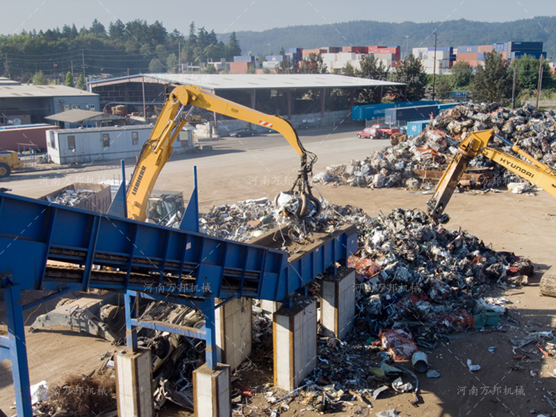 彩鋼瓦破碎機是河南萬邦機械金屬粉碎機系列中用于實現(xiàn)輕薄金屬破碎的一種設備,在設備選型上可考慮彩鋼瓦粉碎機配套彩鋼瓦撕碎機進行一體化生產(chǎn)線搭建從而實現(xiàn)自動化彩瓦破碎再生加工。經(jīng)過該機加工后的廢舊彩鋼瓦可有效降低金屬表層油漆覆蓋面,從而穩(wěn)定廢舊金屬冶金成分降低鋼鐵硫、磷含量,再次使用該機破碎后的廢舊彩鋼瓦在轉(zhuǎn)運具有密度高、占方小運輸成本低的優(yōu)勢。在設備應用上該機被廣泛應用于各大廢品回收站,用來對回收后的彩鋼瓦、薄鐵皮、廢鐵屑、易拉罐、油漆桶等進行破碎加工。在設備選型上河南萬邦機械可提供800型-3000型彩鋼瓦破碎設備可供用戶選擇,在處理量上可實現(xiàn)800-28000kg/h。