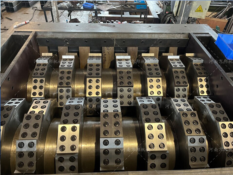 河南萬邦機(jī)械液壓金屬撕碎機(jī)在設(shè)備生產(chǎn)設(shè)計(jì)中通常采用液壓馬達(dá)作為設(shè)備大扭矩傳載的主要工具,在機(jī)構(gòu)原理上通過電機(jī)驅(qū)動(dòng)液壓泵站提供液壓系統(tǒng)壓力,在液壓系統(tǒng)壓力的作用下驅(qū)動(dòng)設(shè)備液壓馬達(dá)實(shí)現(xiàn)主軸旋轉(zhuǎn)從而實(shí)現(xiàn)物料的破碎處理,相對于傳統(tǒng)電驅(qū)撕碎機(jī)設(shè)備運(yùn)行更加平穩(wěn),相對傳動(dòng)扭矩更大,在驅(qū)動(dòng)控制系統(tǒng)上可適時(shí)調(diào)節(jié)主軸轉(zhuǎn)速,相對電信號延遲控制精度無法保證的情況萬邦液壓撕碎機(jī)具有更大優(yōu)勢。 河南萬邦機(jī)械金屬撕碎機(jī)組成: