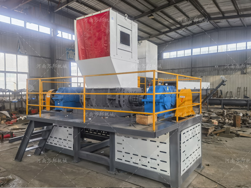 河南萬邦機(jī)械液壓金屬撕碎機(jī)又叫做雙軸破碎機(jī),雙軸金屬破碎機(jī),該機(jī)為河南萬邦機(jī)械依據(jù)市場需求而研究開發(fā)的一種新型剪切式破碎機(jī),該機(jī)主要作為金屬粗碎設(shè)備用于對報(bào)廢汽車外殼、彩鋼瓦、油漆桶等大型廢舊空體物料進(jìn)行破碎加工,所加工物料根據(jù)厚度及材質(zhì)種類不同呈顆粒狀或片狀結(jié)構(gòu),該機(jī)相對金屬粉碎機(jī)在具有:噪音低、粉塵少、適用性廣、破碎比大的優(yōu)勢。在設(shè)備適用性上來說金屬撕碎機(jī)主要作為金屬粉碎機(jī)前道粗碎設(shè)備用于對金屬粉碎機(jī)無法破碎的大型金屬進(jìn)行預(yù)處理已達(dá)到細(xì)碎加工設(shè)備處理要求。在設(shè)備構(gòu)成上金屬撕碎機(jī)主要由撕碎刀片組、承載箱體、箱體支架、進(jìn)料系統(tǒng)、動(dòng)力系統(tǒng),電器控制系統(tǒng)組成,在破碎大型廢舊金屬過程中該機(jī)獨(dú)有的動(dòng)力保護(hù)機(jī)構(gòu)可有效的防止設(shè)備超載造成的設(shè)備損壞。河南萬邦機(jī)械金屬撕碎機(jī)圖片如下: